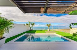 Luxury bungalow in a spectacular beachfront location in Costa Adeje! The bungalow is designed to maximize sunshine from the terrace throughout the day, offering stunning views of the beach and sea. It features three bedrooms, four bathrooms, a living-dining room, a fully equipped kitchen with an island, and a front terrace with a private pool. High-quality, contemporary materials are used throughout.