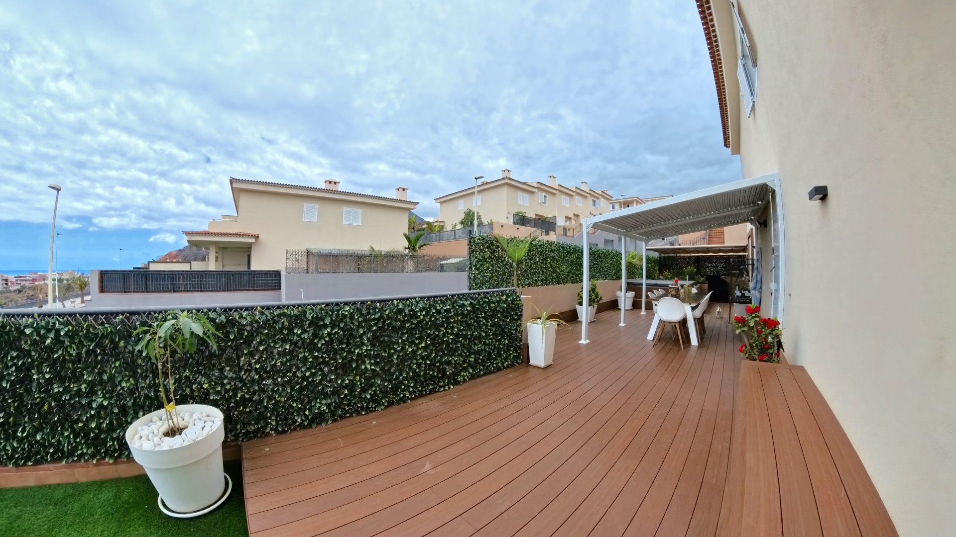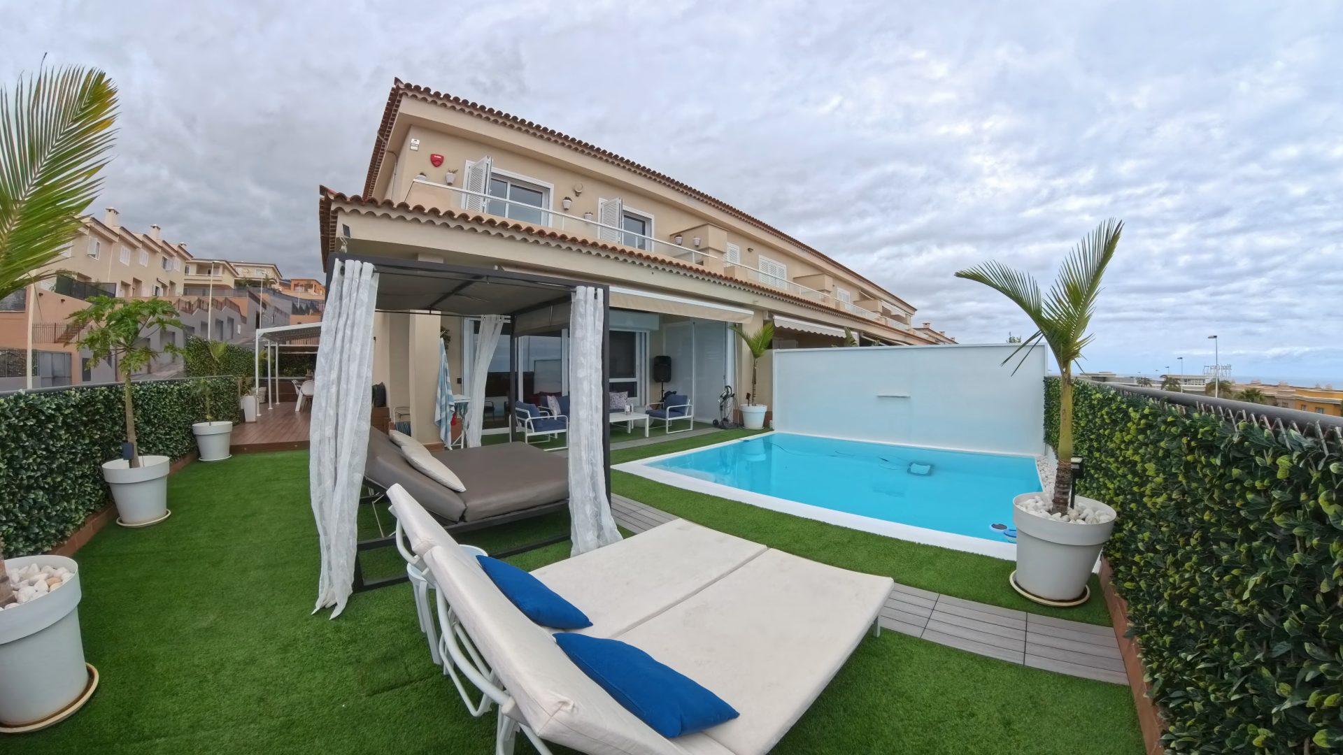Vive la experiencia de residir en una propiedad única, donde el lujo se fusiona con la ubicación privilegiada. Este impresionante chalet pareado, situado a tan solo 500 metros del mar y a dos minutos del supermercado Mercadona y del centro deportivo municipal, ofrece vistas espectaculares al Atlántico y a la isla de La Gomera, creando un escenario de ensueño desde cada rincón.