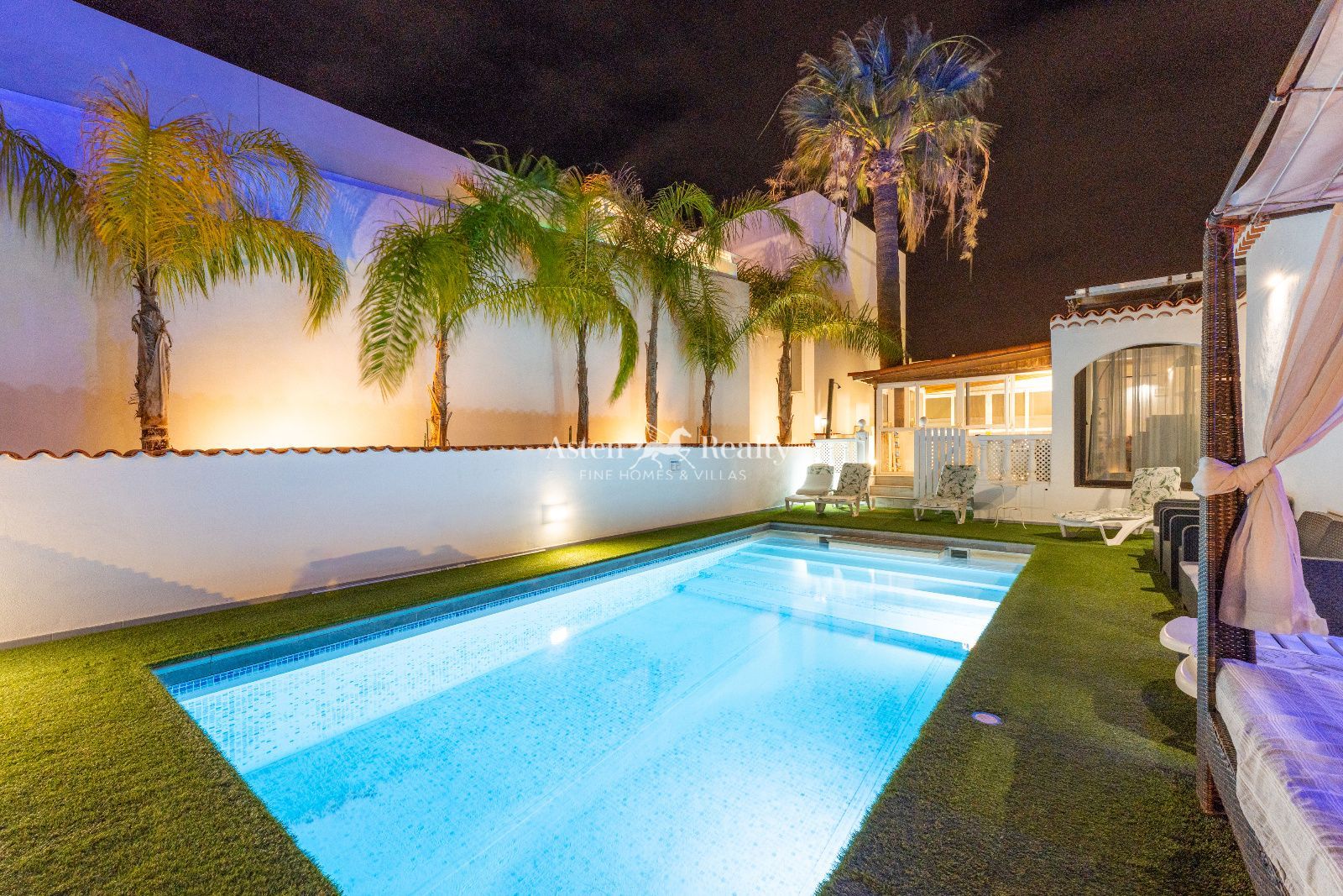 Exclusive luxury villa in Amarilla Golf, Tenerife South. This spectacular, recently renovated property is located in one of the quietest and most sought-after areas in the south of the island, in the prestigious Amarilla Golf complex. The villa combines contemporary design, comfort and dreamlike spaces, offering a unique beachfront living experience. It features a large heated private pool surrounded by relaxation areas, a rooftop jacuzzi with stunning ocean views, an elegant terrace with a Balinese spa bed and state-of-the-art lawn, modern and bright interiors with air conditioning and WiFi, a fully equipped games room ideal for family entertainment, and spacious living and dining areas designed for comfort and conviviality. Its location is unbeatable, just a 2-minute walk from the sea and the golf course, in an exclusive setting that combines tranquillity, privacy and proximity to all amenities. A unique opportunity for those looking for a luxury property in Tenerife, either as a family residence or as an investment with high potential in the holiday market.