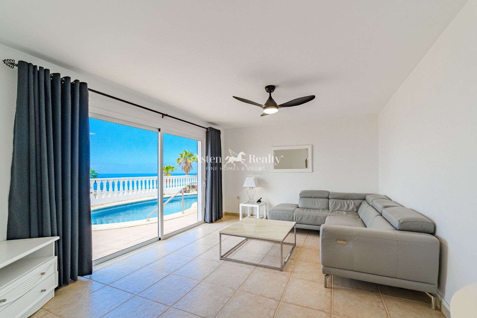 Coastal Villa with Ocean Views – Puerto Santiago, TenerifeThis well-appointed single-level villa offers comfortable coastal living in Puerto Santiago, Tenerife, with unobstructed ocean views and distant vistas of La Gomera island. The property comprises three bedrooms, two bathrooms with two en-suites, and a recently renovated kitchen with contemporary fittings. Open-plan living areas maximize natural light and showcase stunning ocean views throughout the day.The outdoor space features a private swimming pool and thoughtfully designed entertaining areas, complemented by low-maintenance gardens and a single garage. Puerto Santiago provides an ideal location with a supermarket just five minutes’ walk away, while both Playa La Arena Beach and Los Gigantes Beach are located 2km from the property, offering dramatic black sand coastlines and spectacular cliff backdrops.This single-level villa combines modern amenities with prime coastal positioning, making it suitable for permanent residence or holiday home use. The private pool and outdoor areas take full advantage of Tenerife’s year-round subtropical climate, creating an ideal environment for relaxation in one of the island’s most desirable residential areas.Construction year: 2003.Reference Asten Realty: 9620.